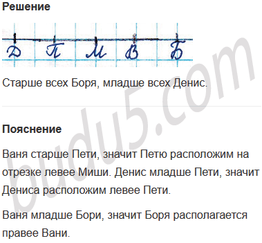 Задание № 10. Ребята стали спрашивать друг друга, сколько кому лет. Оказалось, что Миша младше Вани, но старше Пети. Кто из ребят старше всех? Кто младше всех?